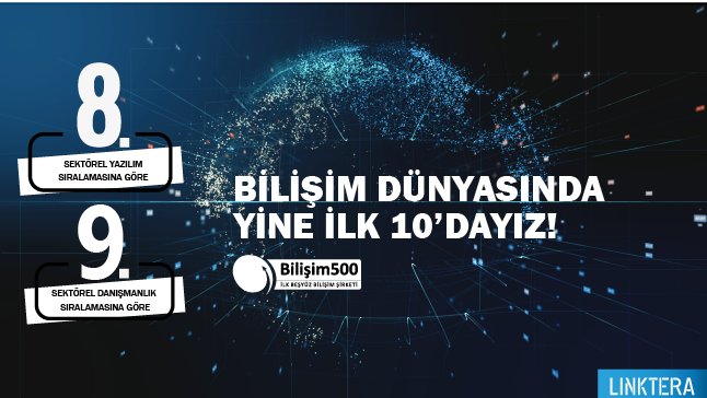This year's Bilişim500 results have been announced. At the research that contributes to the development of Turkey's and the business world, Linktera has continued to rise in different categories again. According to the research that covers the development, tendencies and expectations of the IT market in all its details; We strengthened our position in the sector as the 7th among the Sectoral Software companies and the 11th among the Sectoral Consultancy / System Integration companies.